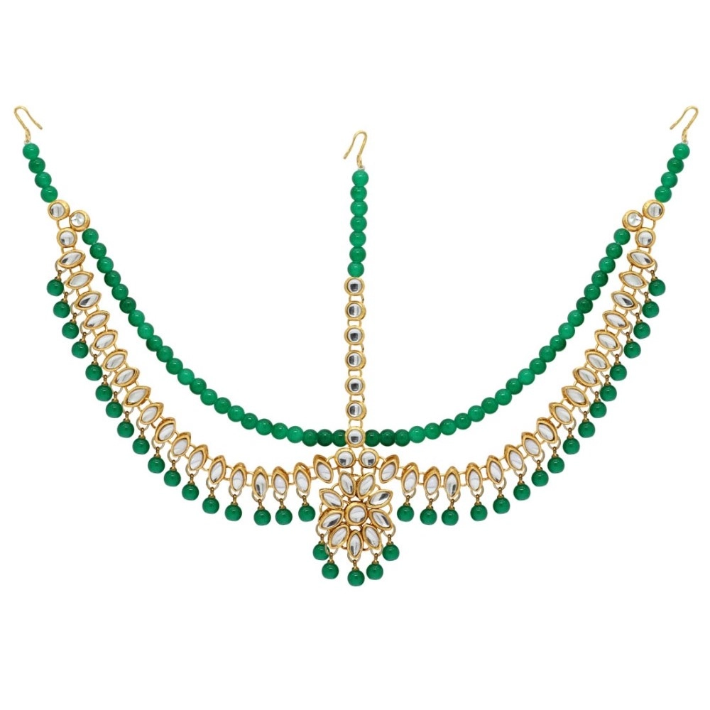 BS Women’s Green Color Imitation Pearl & Kundan Work Matha Patti