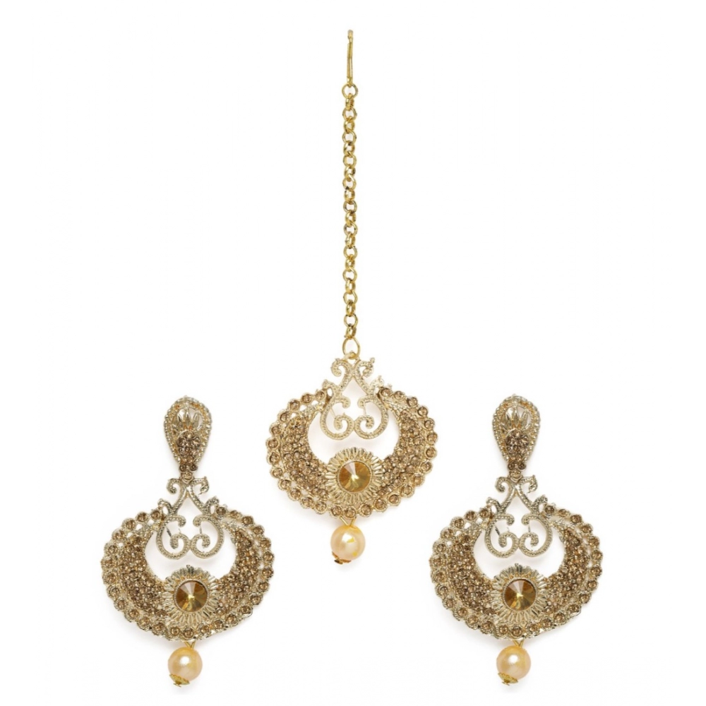 Women’s Rose Gold Plated Alloy Kundan Earrings & Mangtikka