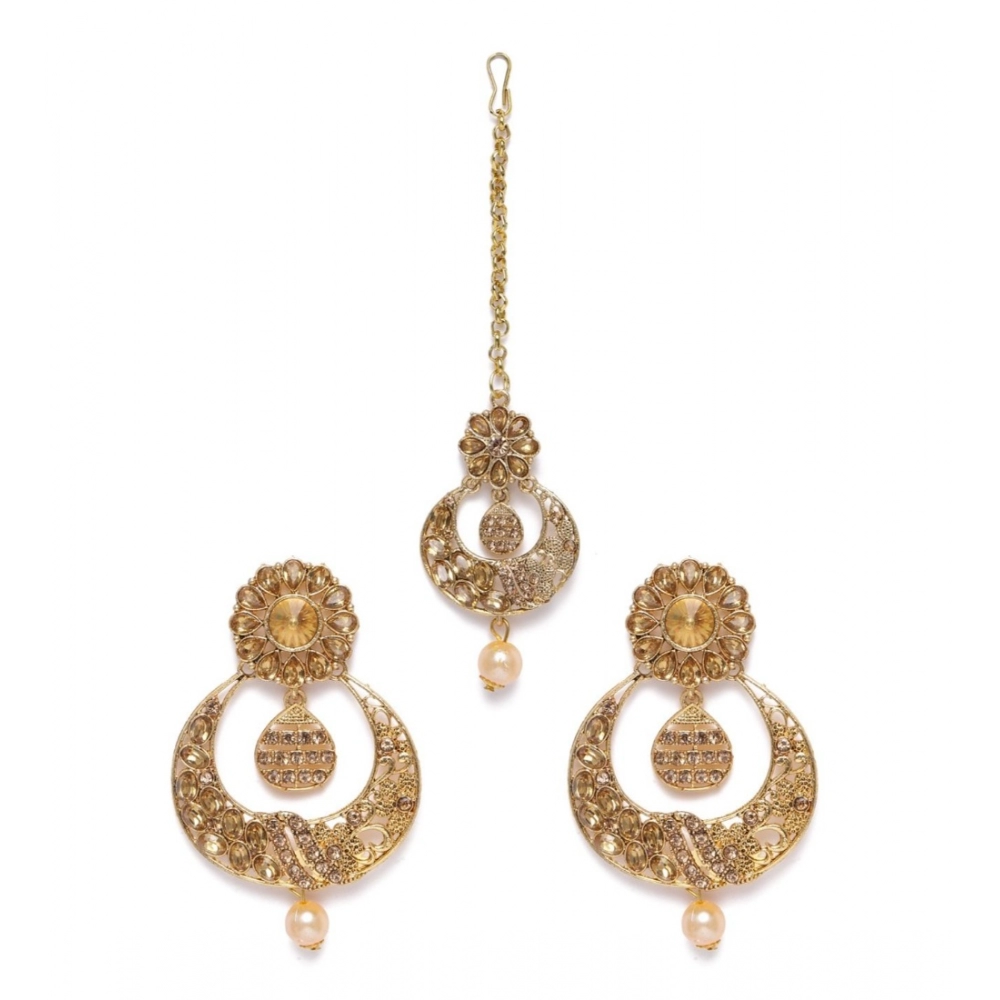 BS Women’s Rose Gold Plated Alloy Kundan Earrings & Mangtikka (Gold)