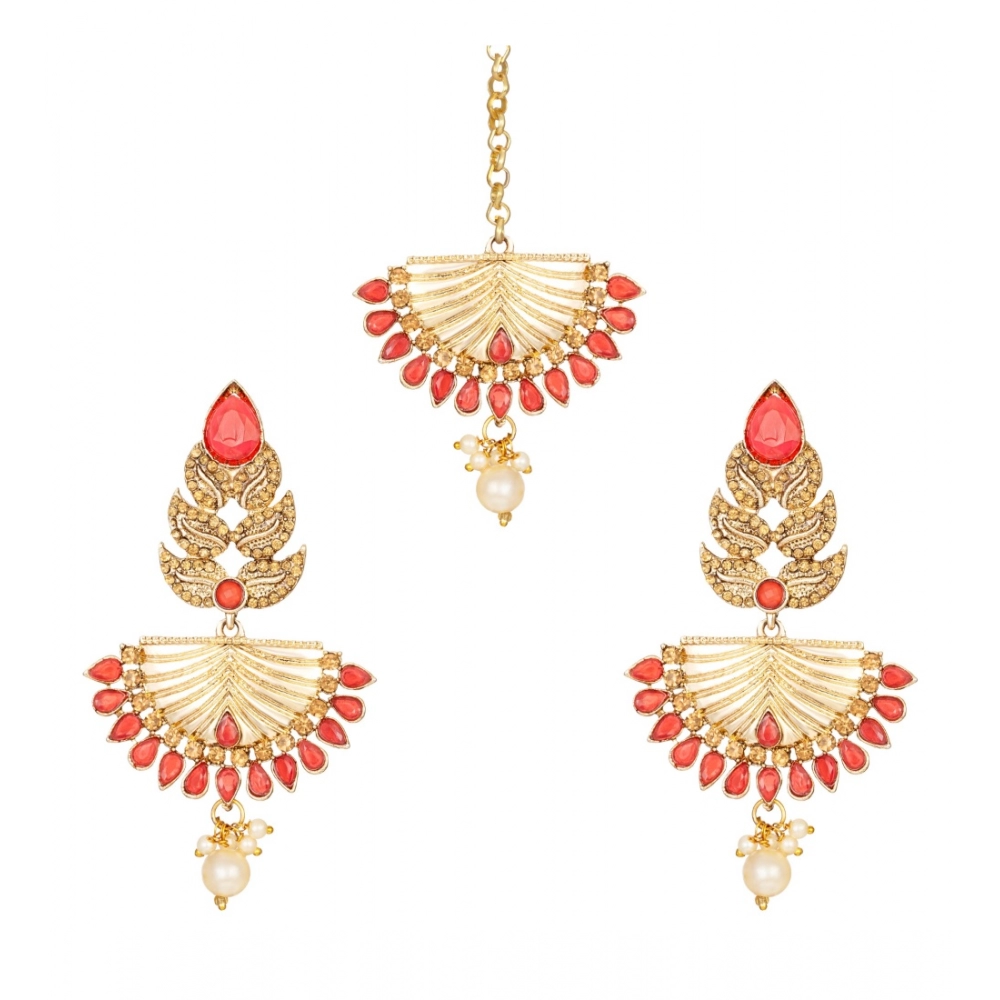 Women’s Rose Gold Plated Alloy Kundan Earrings & Mangtikka
