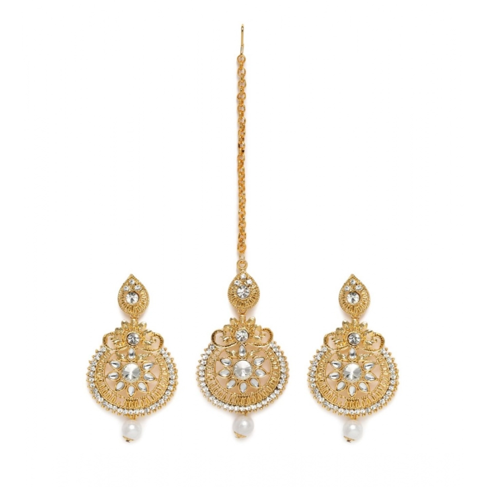 Women’s Rose Gold Plated Alloy Kundan Earrings & Mangtikka