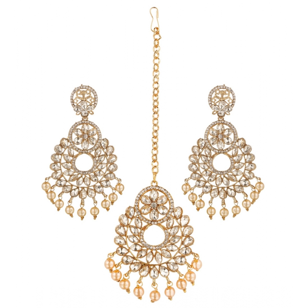 Women’s Rose Gold Plated Alloy Kundan Earrings & Mangtikka