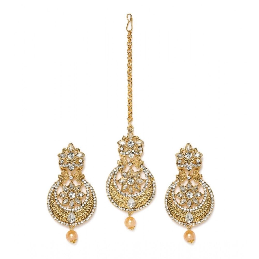 Women’s Rose Gold Plated Alloy Kundan Earrings & Mangtikka