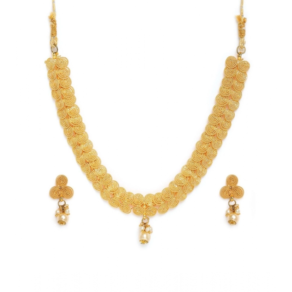 BS Women’s Rose Gold Plated Alloy Necklace & Earings Set (Gold)