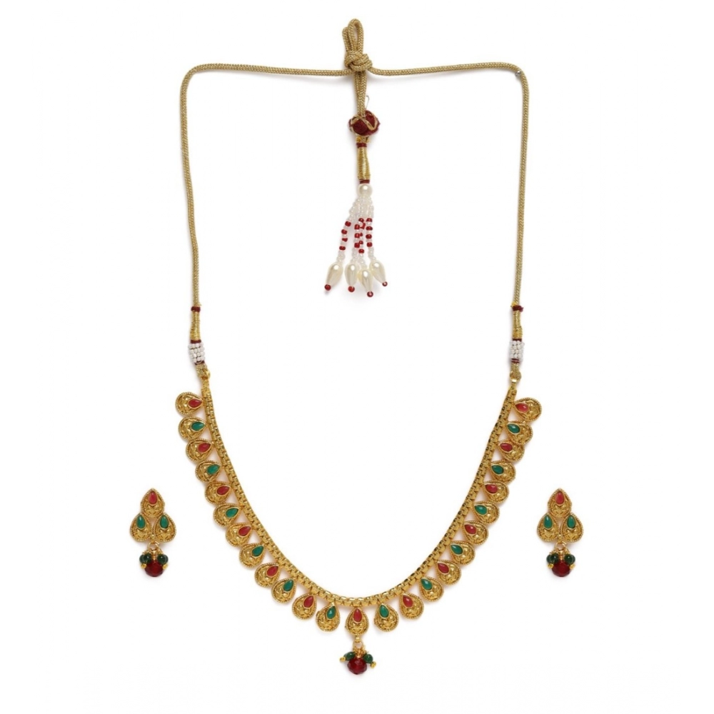 BS Women’s Rose Gold Plated Alloy Necklace & Earings Set (Green & Red)