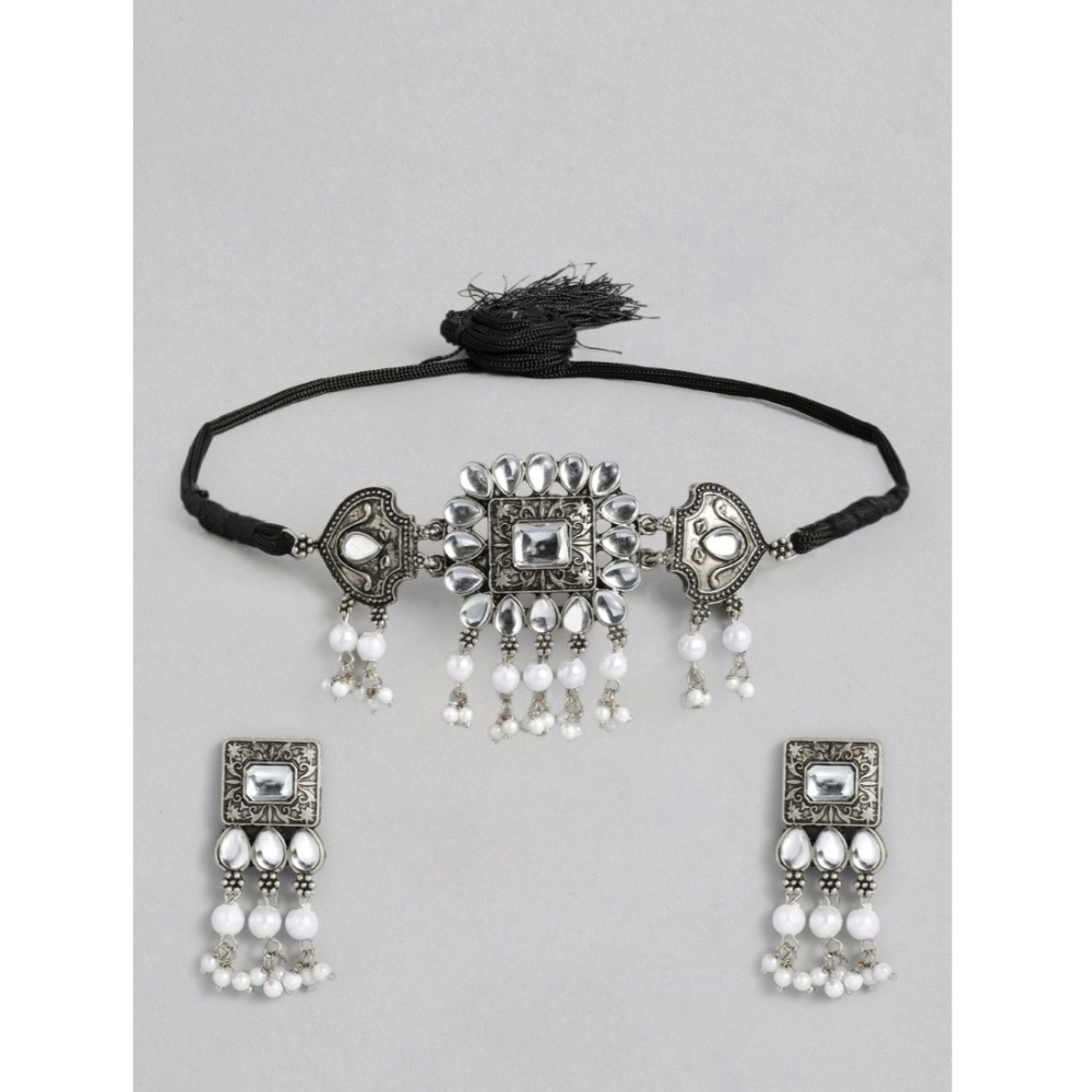 BS Women’s Rose Gold Plated Alloy Necklace & Earings Set (Silver)