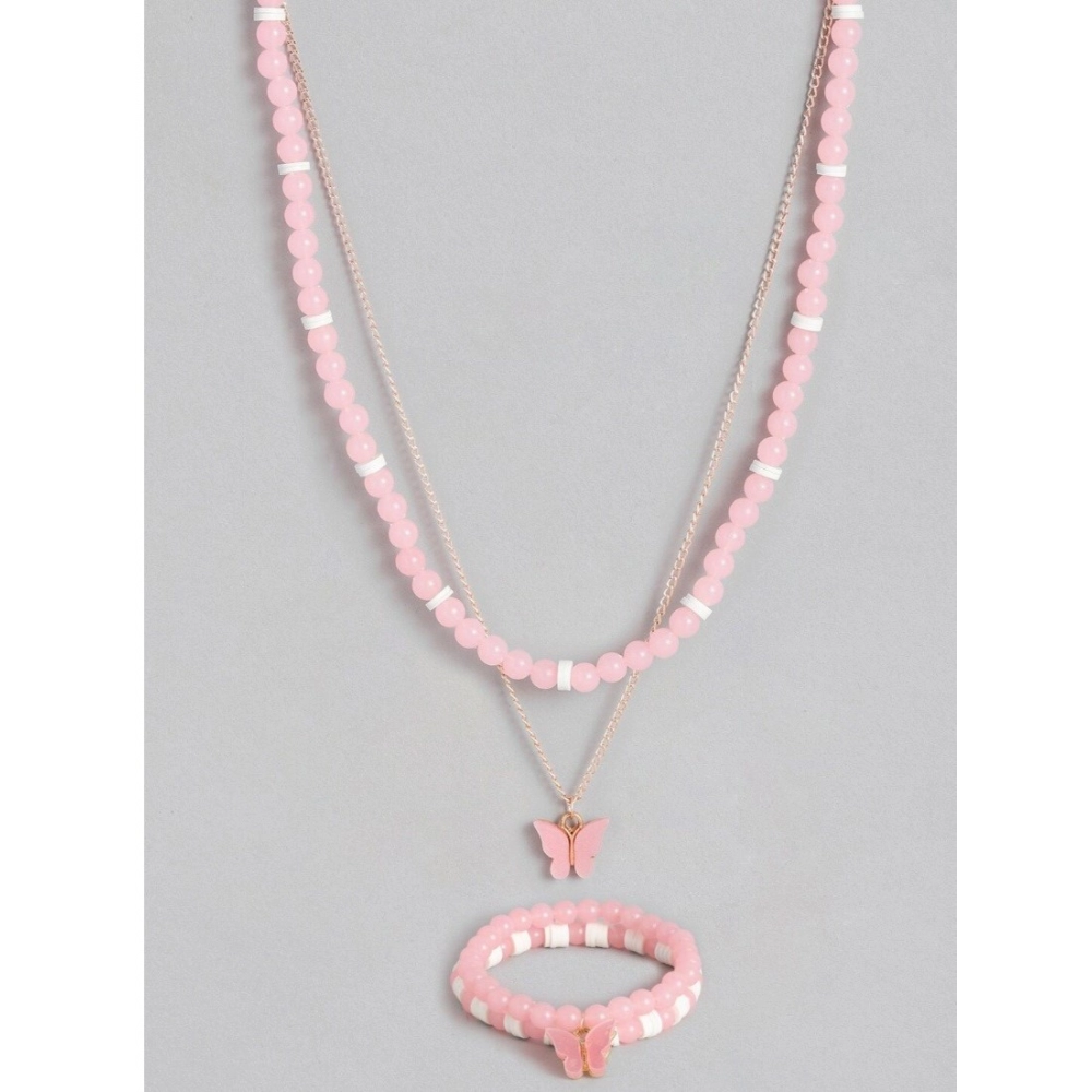 BS Women’s Rose Gold Plated Brass Pendant Chain With Beaded Bracelet (Pink)