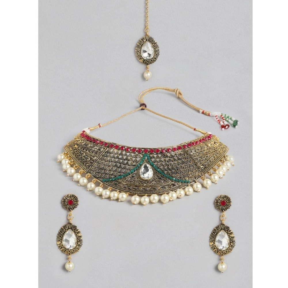 SW Women’s Rose Gold Plated Alloy Necklace & Earings Set (Multicolor)