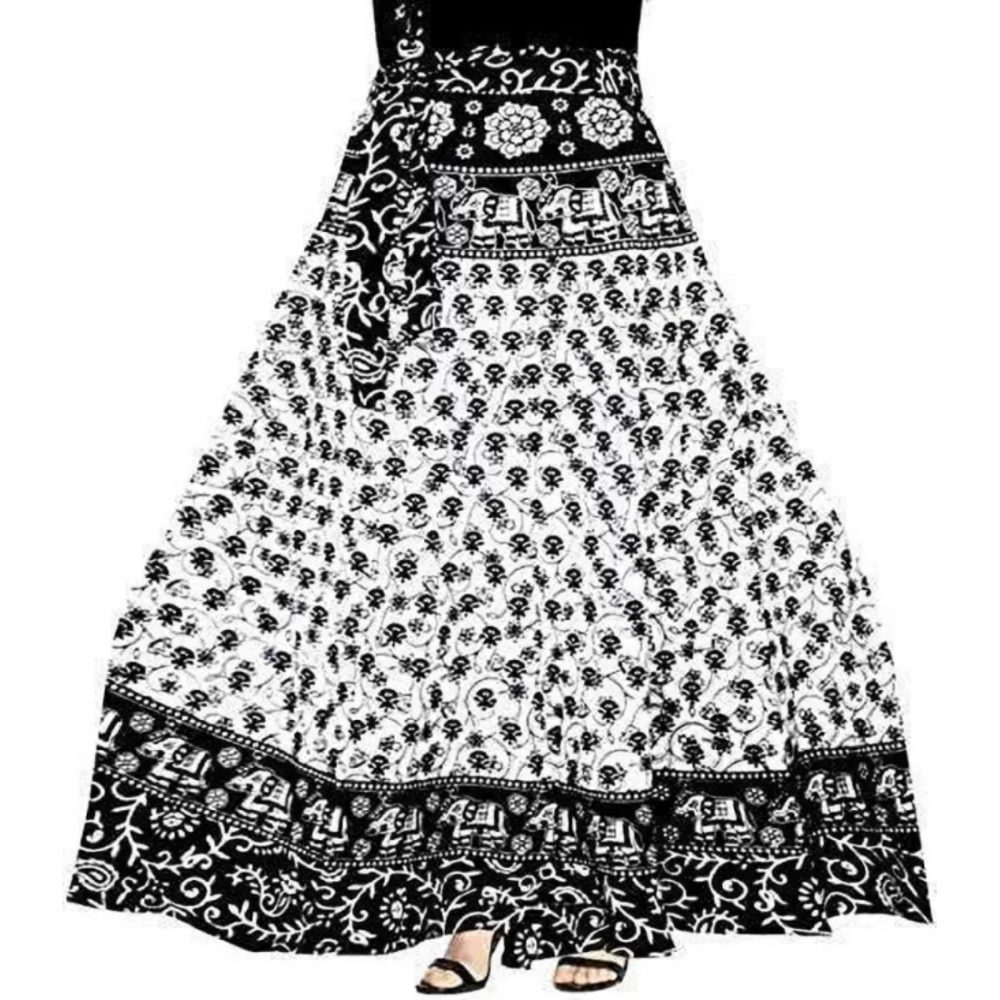 BS Women’s Cotton Jaipur Printed Wrap Around Maxi Skirt (Black, Free Size)